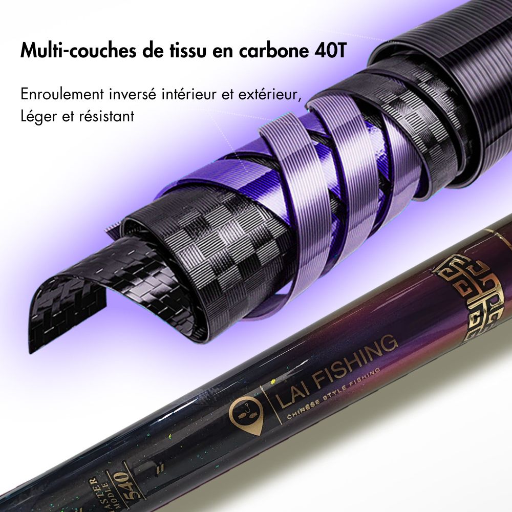 Embarquez pour une expérience de pêche révolutionnaire avec la Canne au coup légère polyvalente pour pêche chinoise - Série Violette de Lai Fishing, votre atout ultime pour une pêche au coup réussie, alliant légèreté, polyvalence et style.